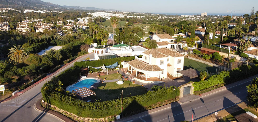 Elegant villa next to Los Naranjos Golf Course situated in one of Marbella’s most prestigious residential areas next to The Club House. This 6-bedroom villa is set on a generous 1,826 m² plot just steps away from three famous golf courses.