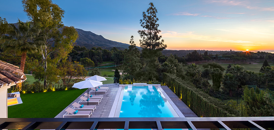 A luxurious 5 bedroom villa situated in a most exquisite location elevated above Aloha Golf Course thus boasting amazing panoramic views across the course to the Mediterranean Sea. The property has been fully reformed and the interior offers a modern elegant lifestyle.