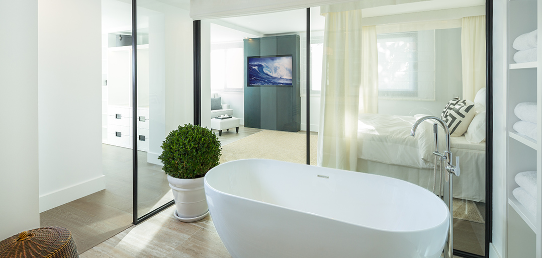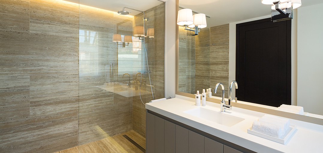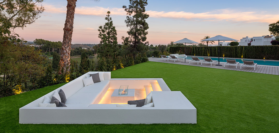 The garden has been laid to lawn with a sunken chill-out terrace and adjacent to the infinity swimming pool one can enjoy an amble terrace for sun-loungers.