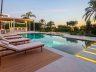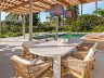 The garden has been laid to lawn surrounding the private pool with water feature and an adjacent covered BBQ area.