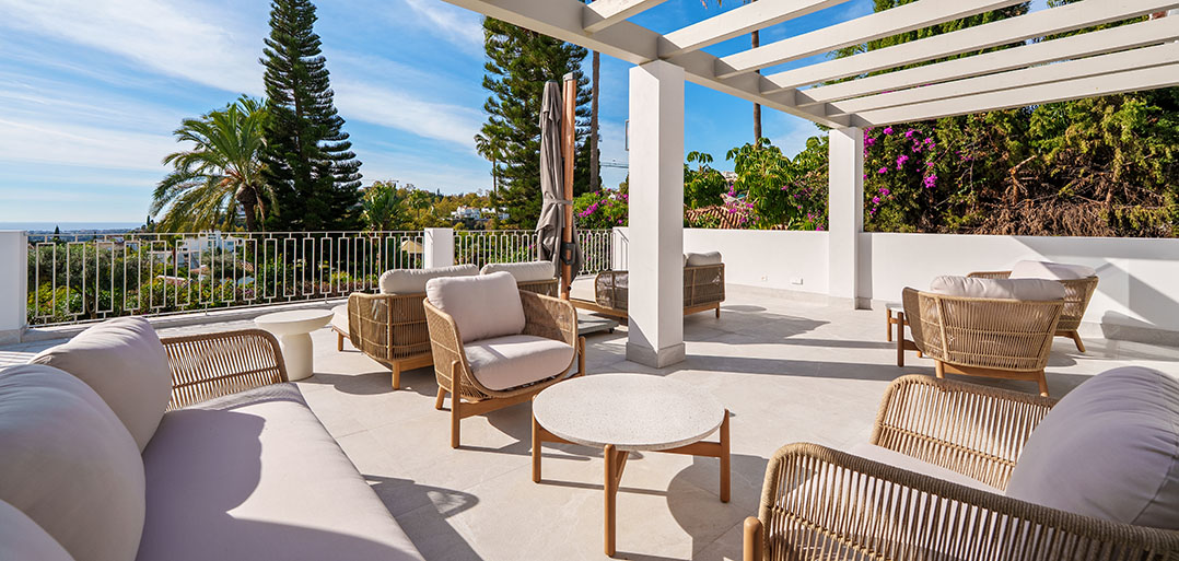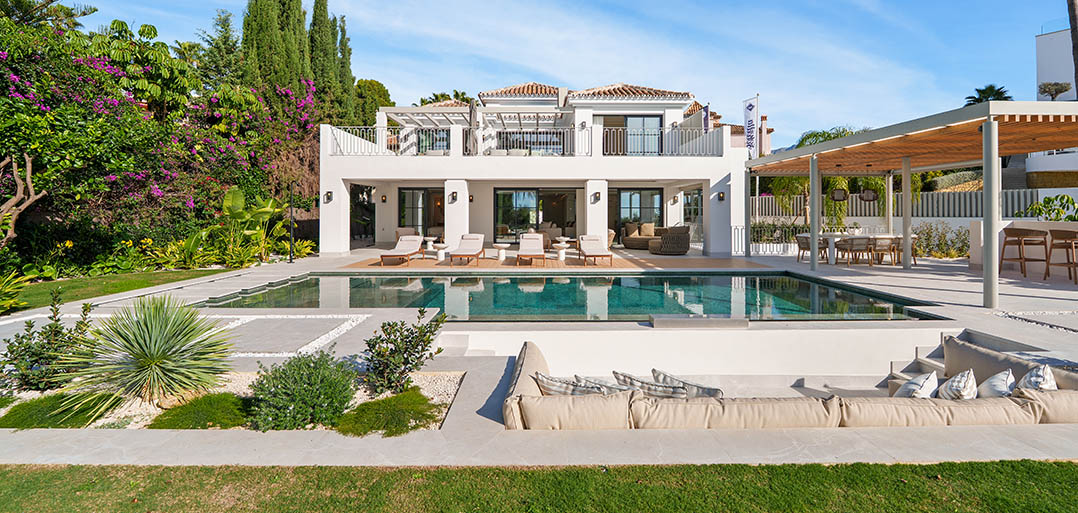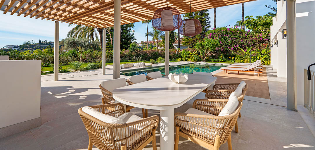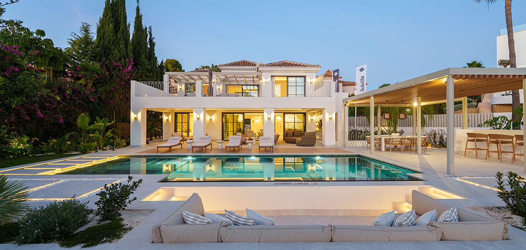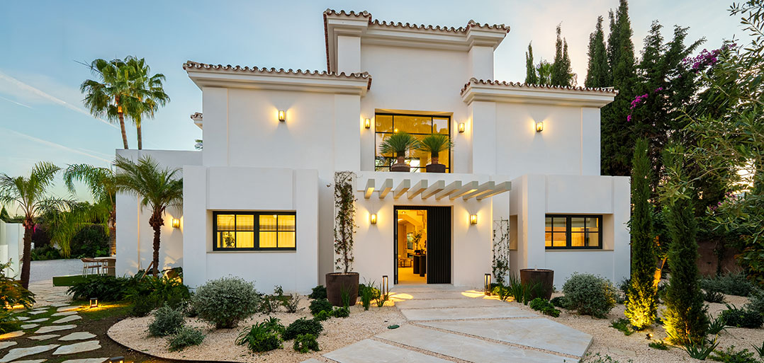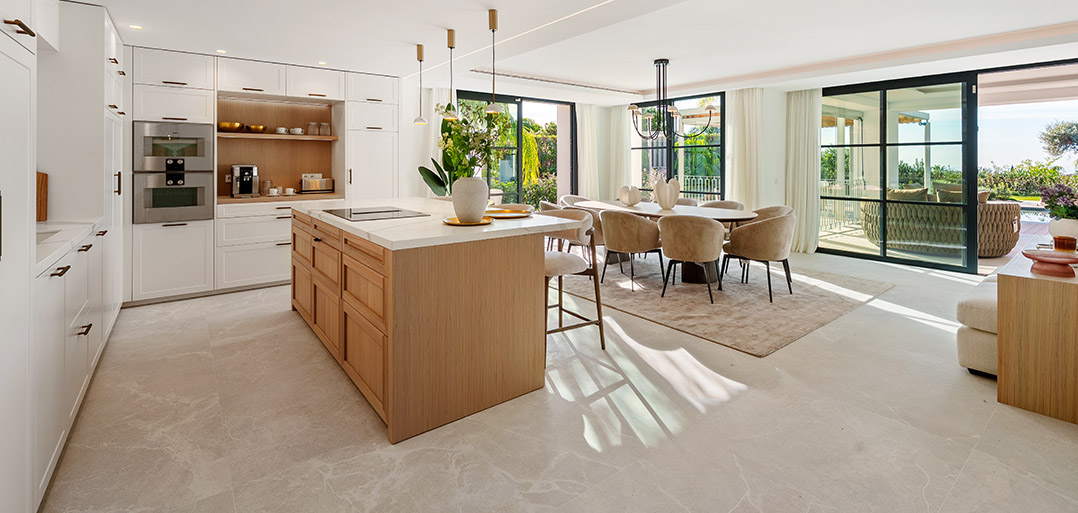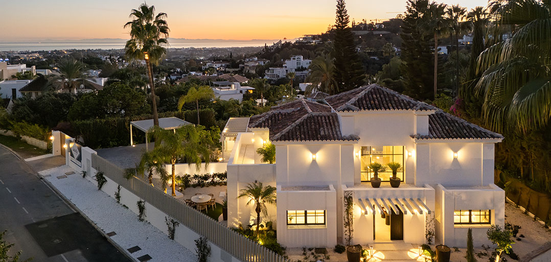A modern Mediterranean 5 bedroom home situated in La Quinta boasting incredible sea views and oozing charm combined with a family orientated spacious open plan layout.