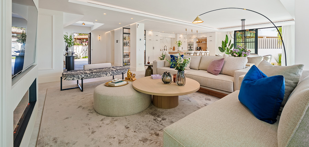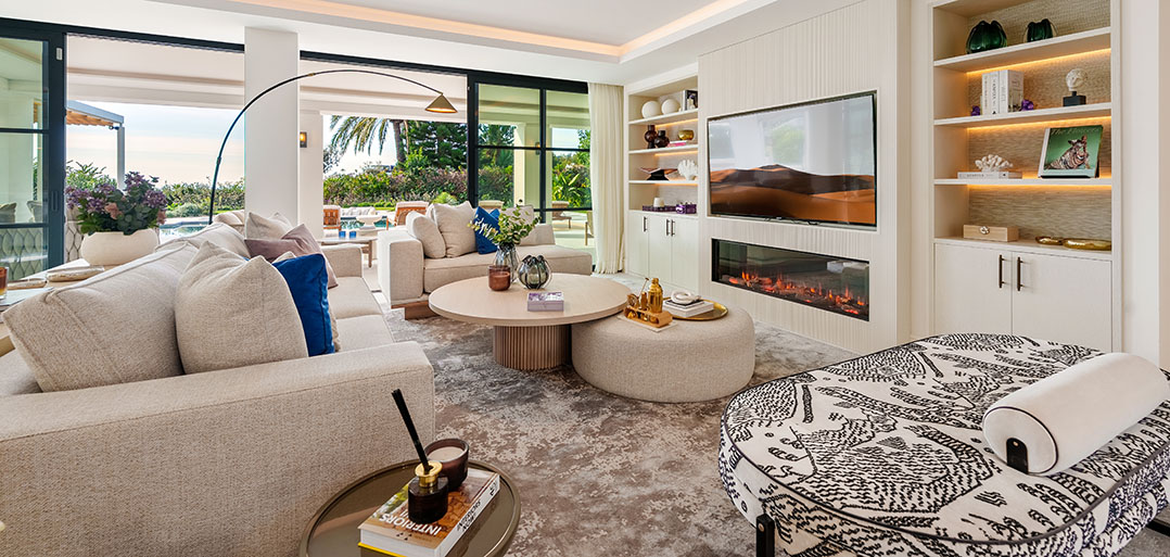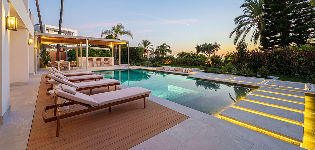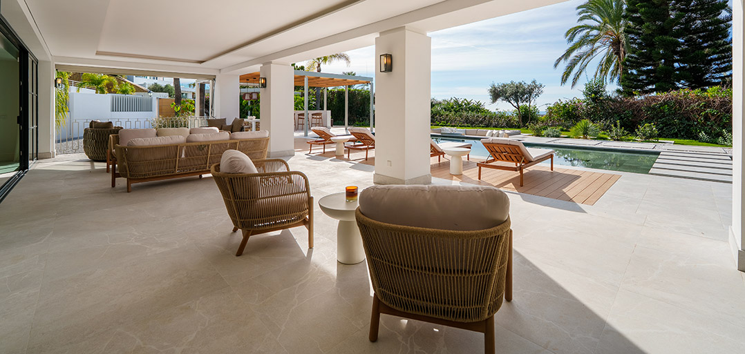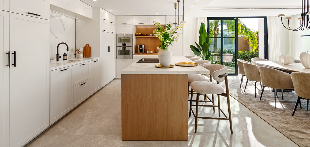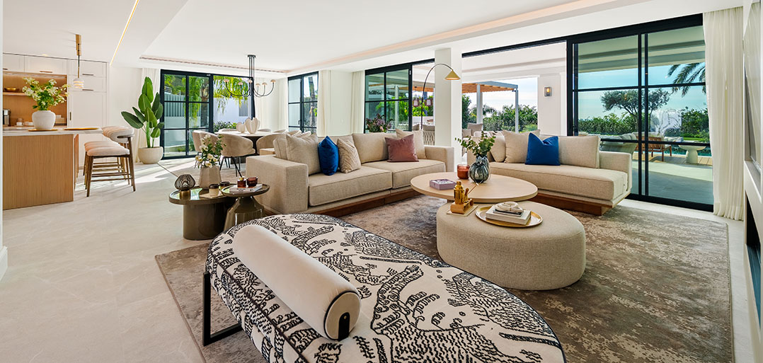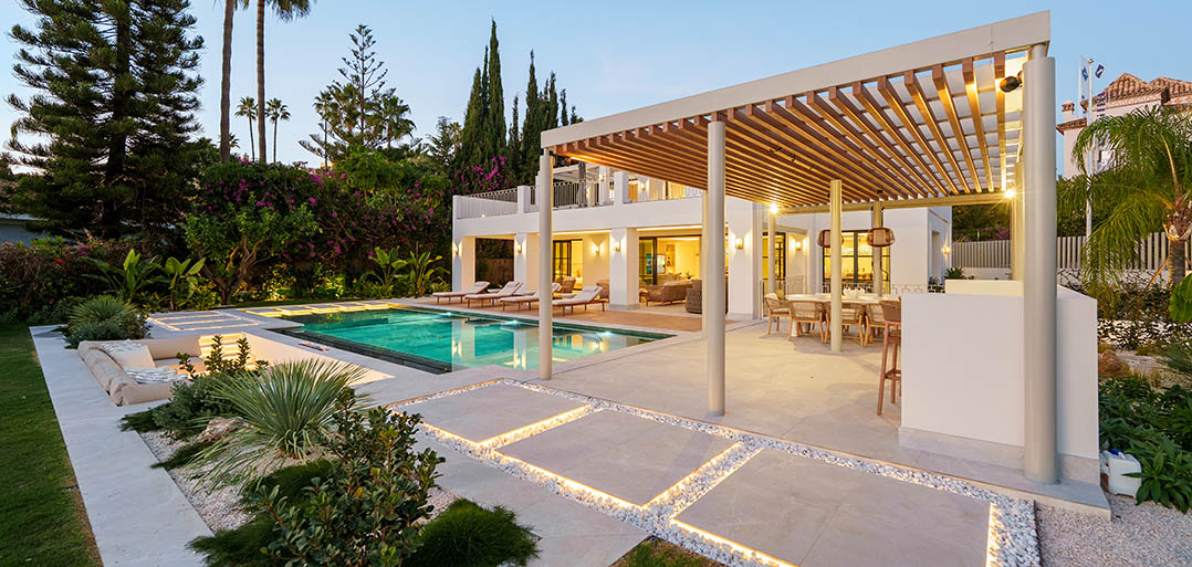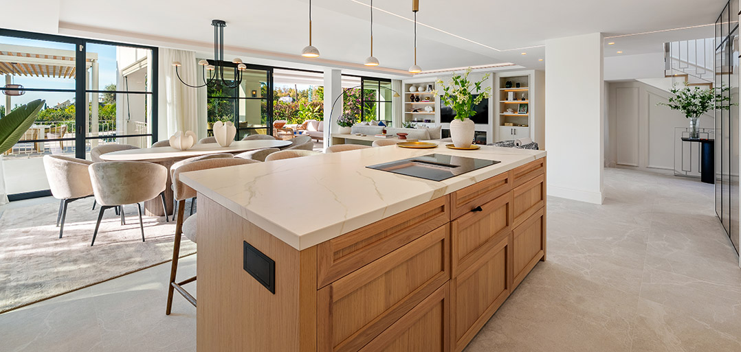 A modern Mediterranean 5 bedroom home situated in La Quinta boasting incredible sea views and oozing charm combined with a family orientated spacious open plan layout.