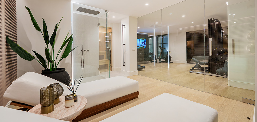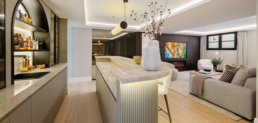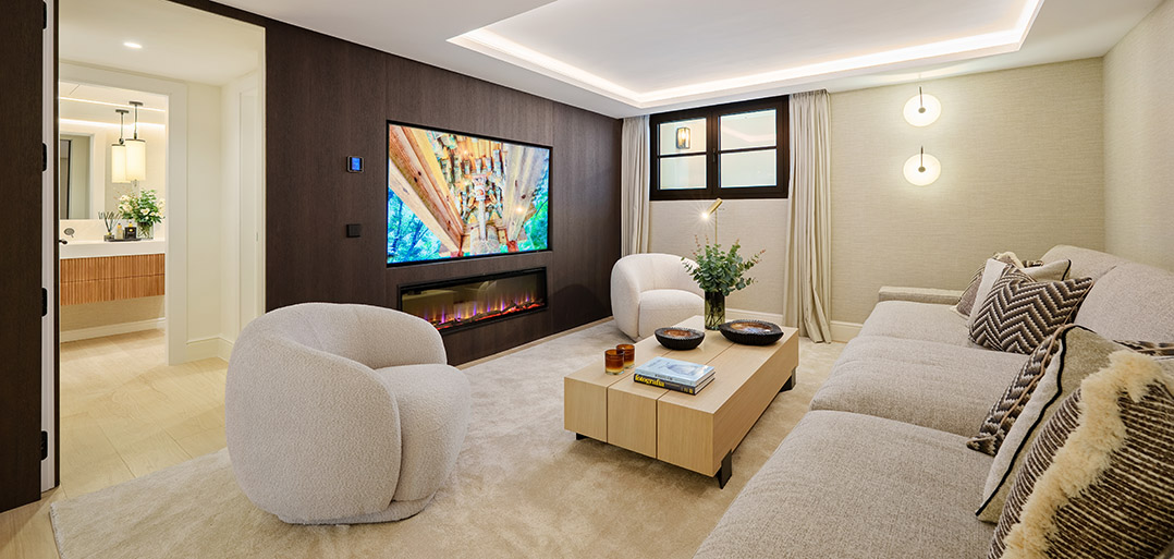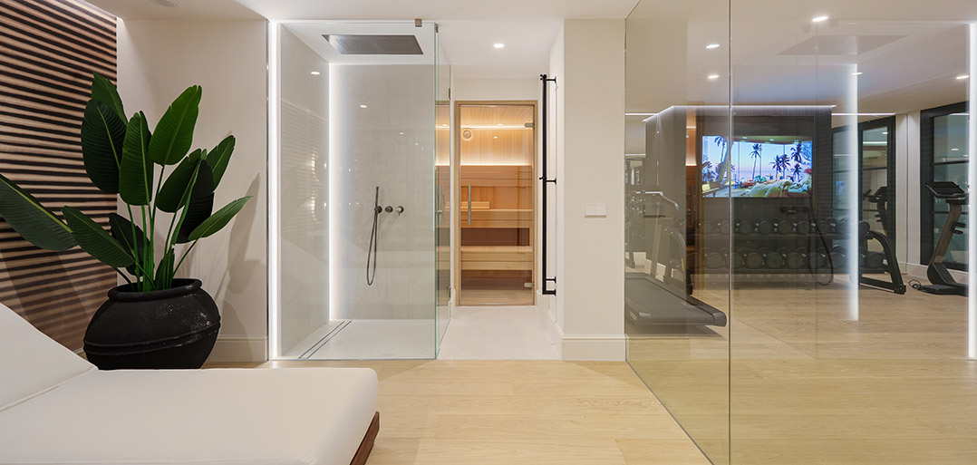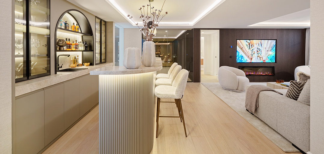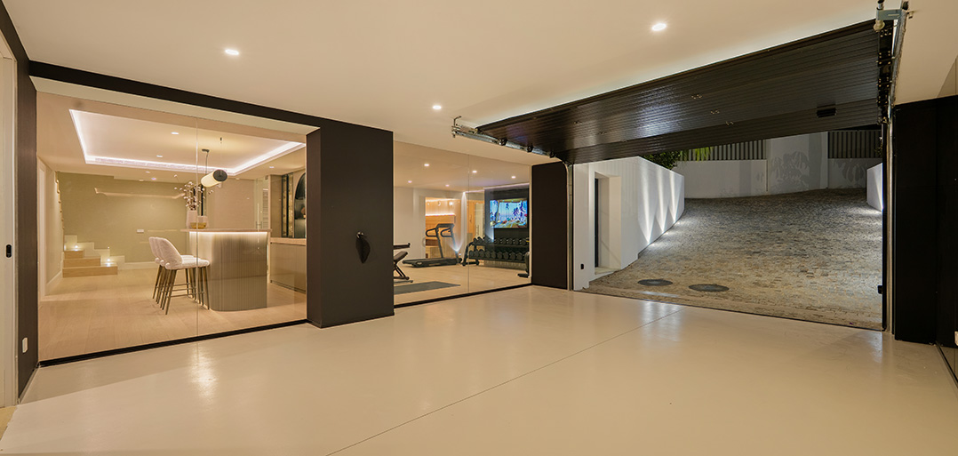 The lower floor accommodates the ultimate of home attributes; - a private fitted gym, home Spa, home bar and cozy TV room. Also, one finds a double bedroom with shower ensuite, currently used as an office and a fitted laundry room.