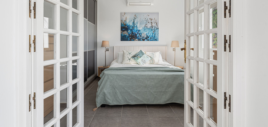 To the left one finds an open plan dining fully fitted kitchen easily accommodating 6 persons. In addition to the left is an office and an elegant master suite with amble wardrobes and bathroom ensuite. With access from a separate entrance or from inside is a third bedroom suite excellent for guests or staff.