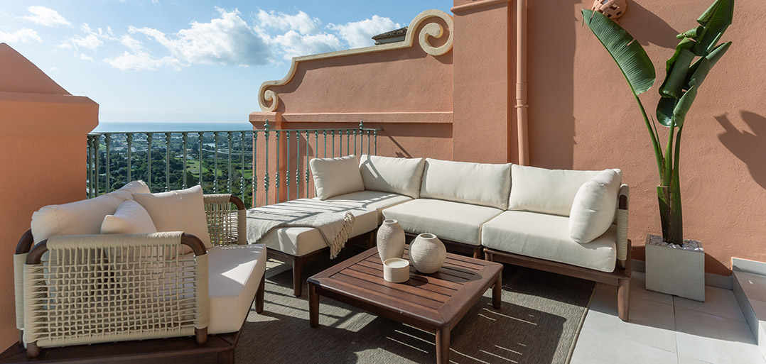 An elegant interior designed four bedroom South facing townhouse created by perfectly blending Scandinavian design with Mediterranean living. Forming part of a calm and beautifully maintained community in La Quinta boasting breathtaking views of the sea across golf courses and lush landscapes.