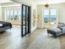 From an elegant hall on the main floor, one is met by fantastic ground floor accommodation; - several connected living spaces, each with views to the magnificent garden and sea, a large trendy fully equipped kitchen with central cooking island and a double bedroom with en-suite bathroom.