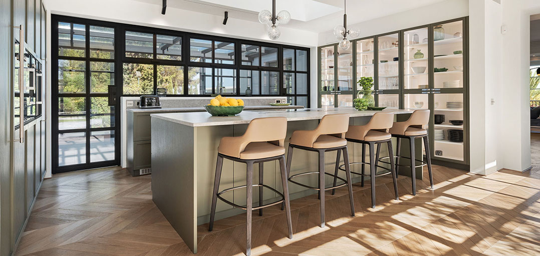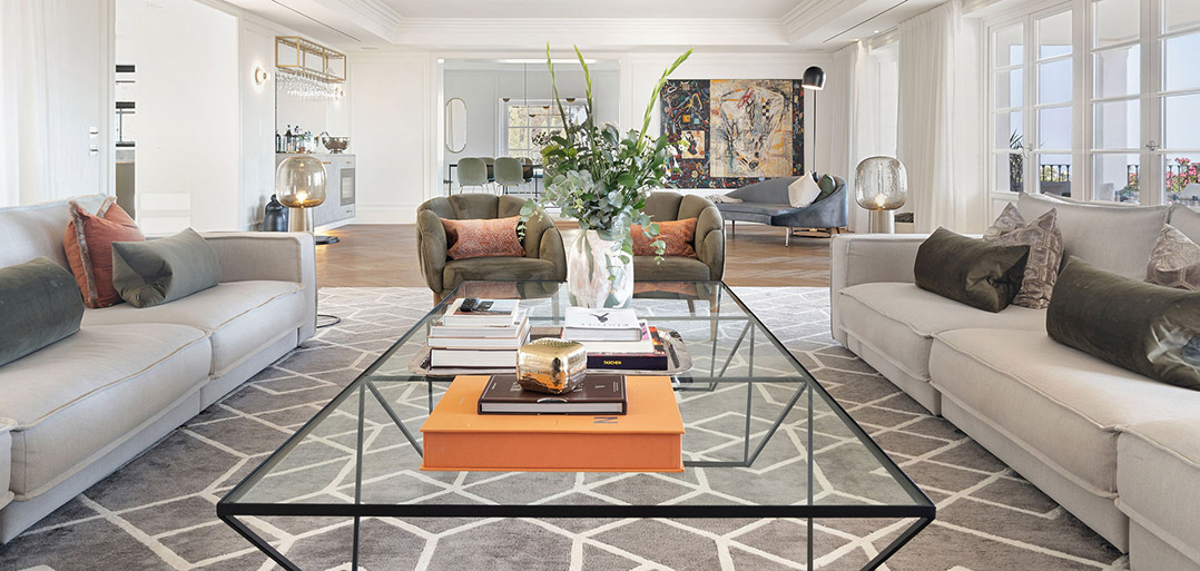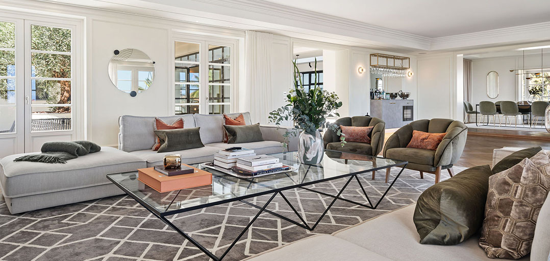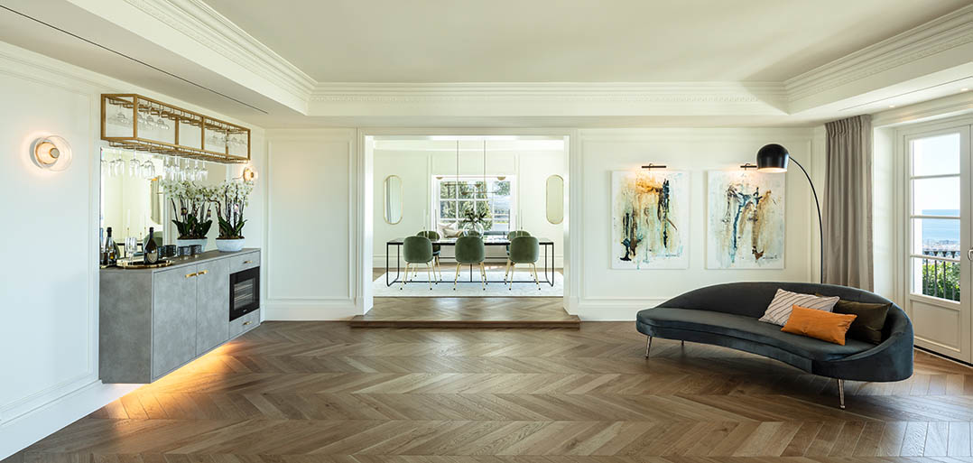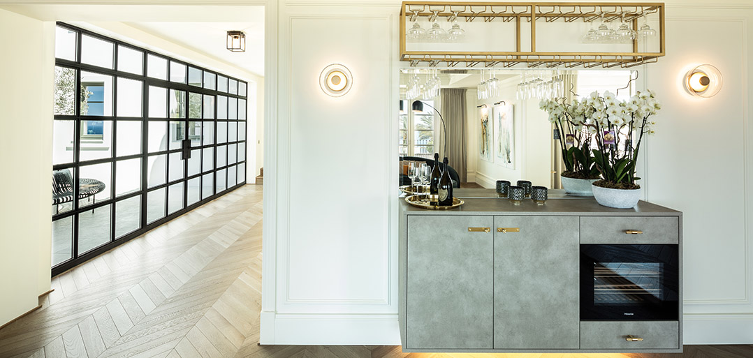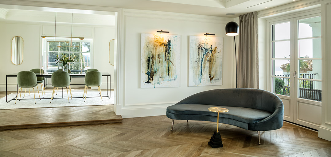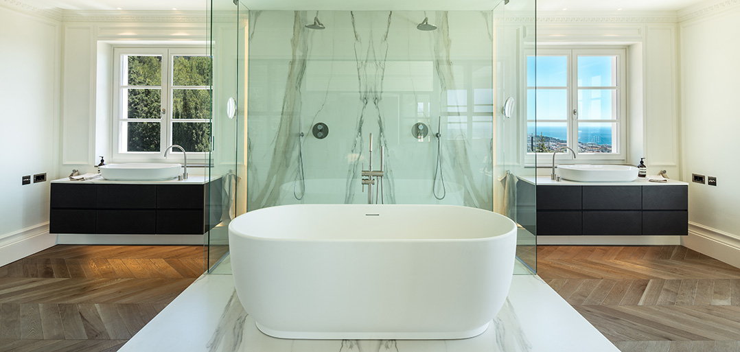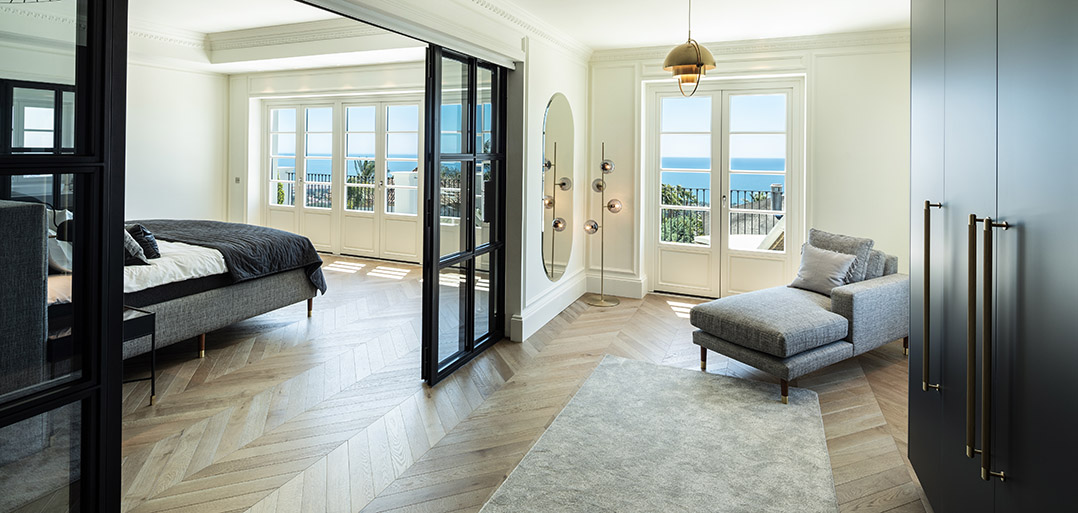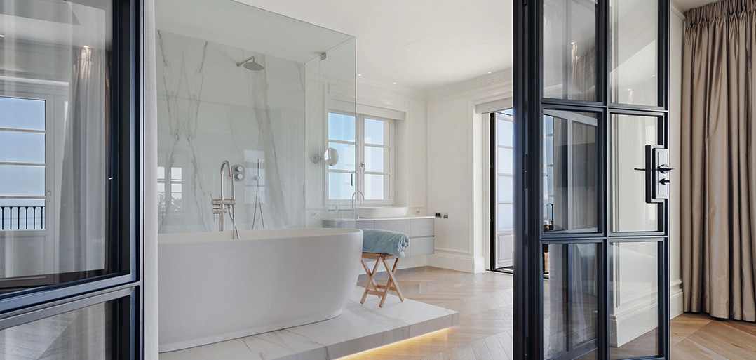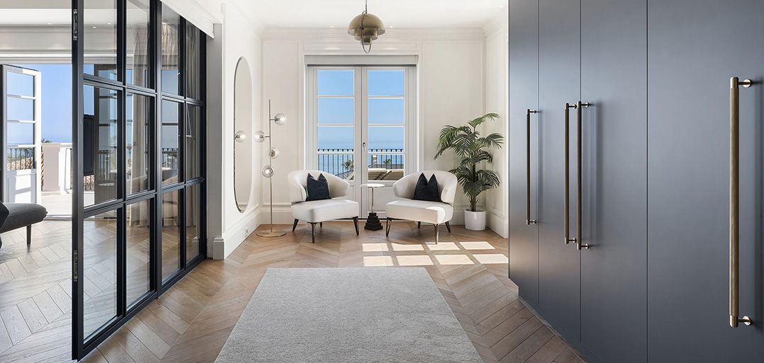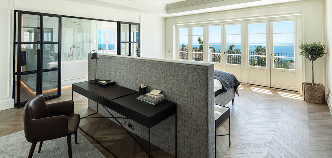 Stairs take to the upper floor with a convenient home office on the mezzanine landing. The first floor offers an impressive master bedroom which enjoys spectacular sea views, a large private terrace, elegant bathroom and chic dressing room. In addition, there are two double bedrooms suites, also decorated with sophisticated interiors to ensure elegance and comfort.
