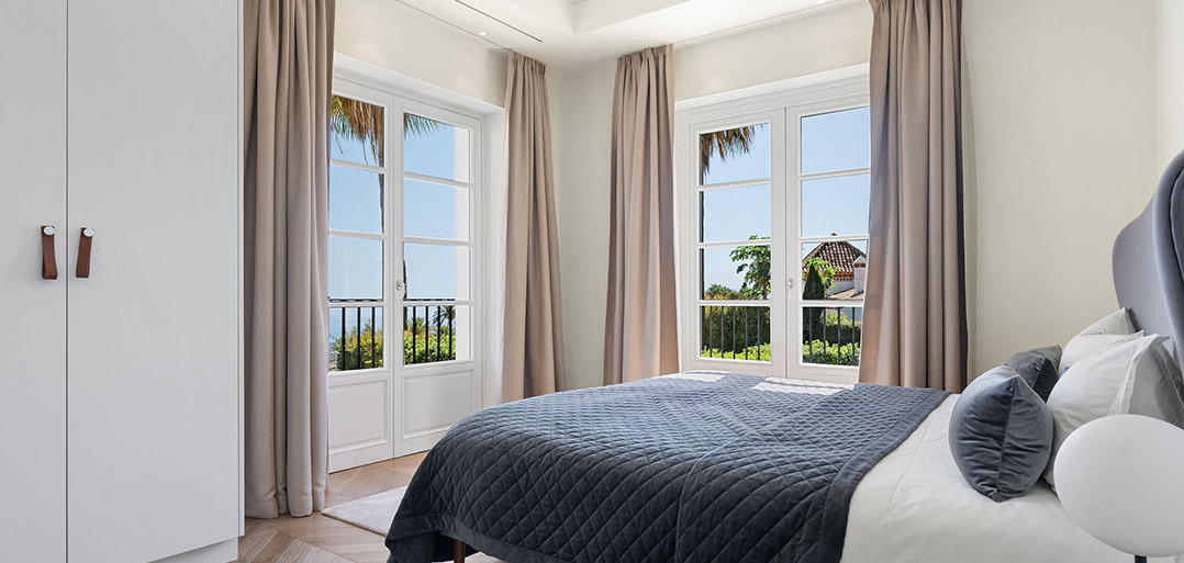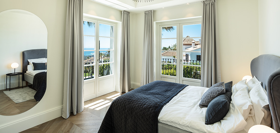 • Description: An exquisitely presented six bedroom villa combining Andalusian architecture with Nordic interior design. Every space has been finished to the highest specifications, using natural elements and sophisticated furniture creating an elegant family home securely situated in a gated community and boasting lovely panoramic sea views.
