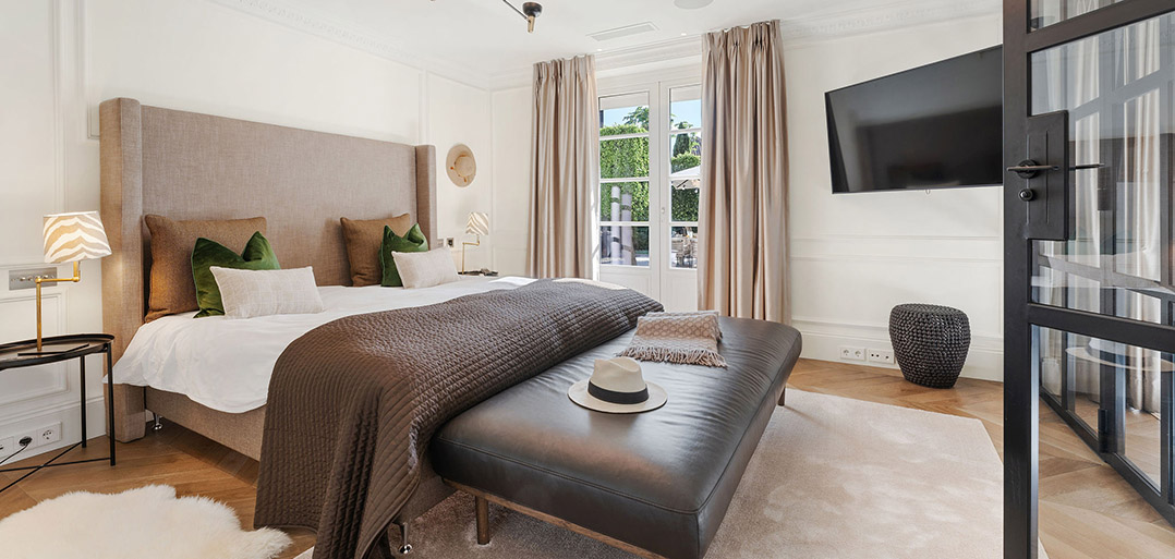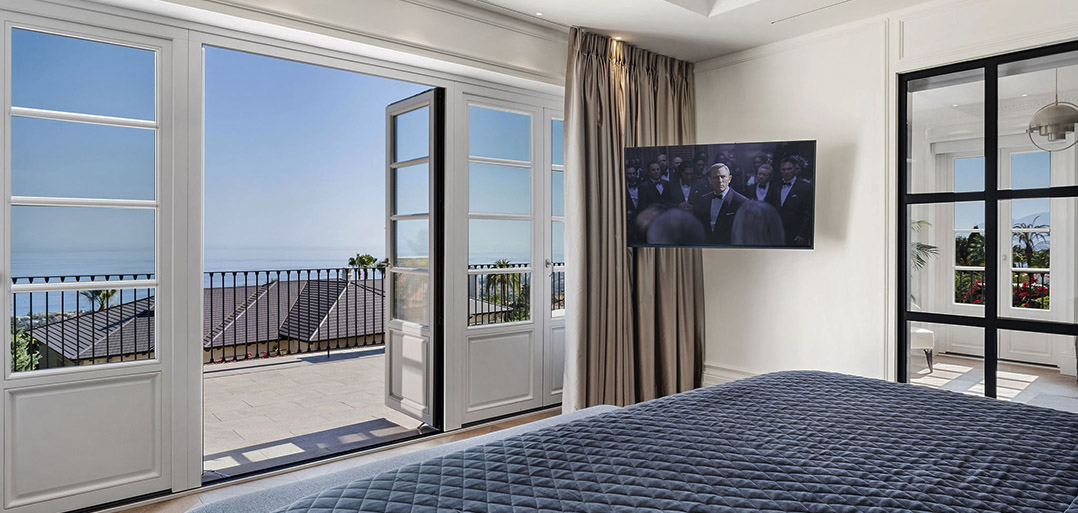 An exquisitely presented six bedroom villa combining Andalusian architecture with Nordic interior design.  Every space has been finished to the highest specifications, using natural elements and sophisticated furniture creating an elegant family home securely situated in a gated community and boasting lovely panoramic sea views.