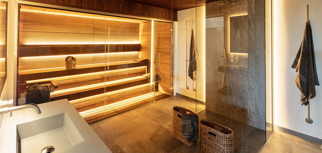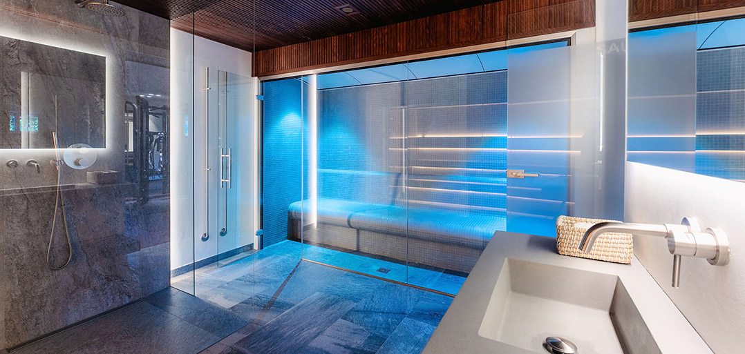 On the lower floor you will find a home cinema, gym, massage room, sauna, Turkish bath, laundry and garage for two cars plus two more guest bedrooms with natural light and en-suite bathrooms.