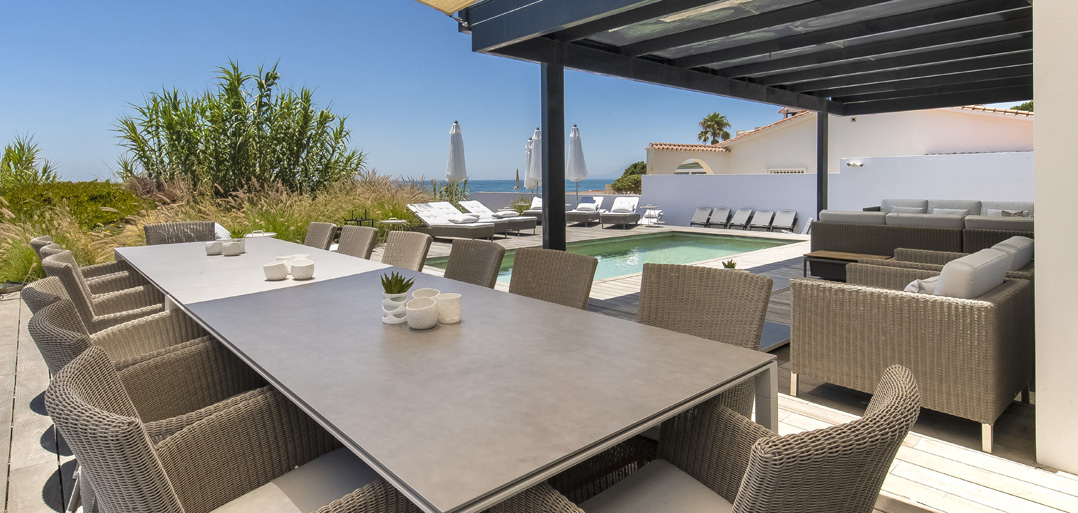 The ultimate luxury 6 bedroom villa stunningly situated front line to a wide sandy beach with direct access from the private decked heated swimming pool area. In addition boasting a fabulous roof terrace with Chill-out bar, large Jacuzzi and lounge area enjoying outstanding panoramic sea views.